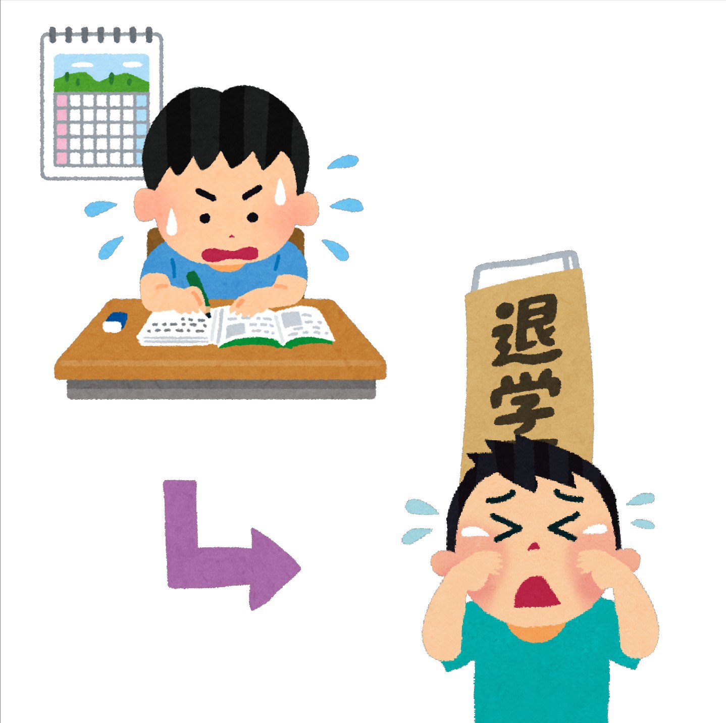 まいチクをいらすとやで再現 Sur Twitter 再現難易度 使ったイラスト 4枚 夏休みの宿題が終わらない男の子のイラスト 矢印のイラスト 直角 退学願 退学届のイラスト 泣いている男の子のイラスト まいにちチクショー